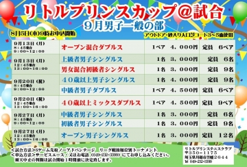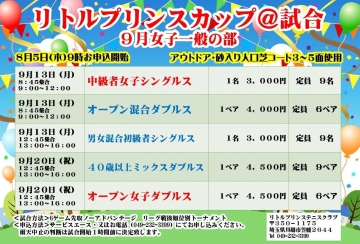 | 申込方法 | リトルプリンステニスクラブHP、申込フォームからお申し込みください。 http://litpri-tennis.com/ |