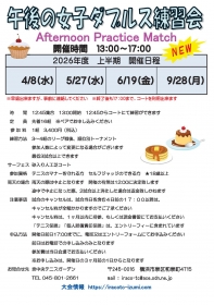 | 主催者コメント | ビギナ-の部 12:45集合 17:00まで 最低3試合以上出来ます 早退は可、事前に連絡してください 18歳以上 |