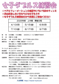 | 主催者コメント | 9:30集合 最低3試合以上出来ます 18歳以上 ペアとフォーメーションの確認や沢山試合をしたい方ならOK |